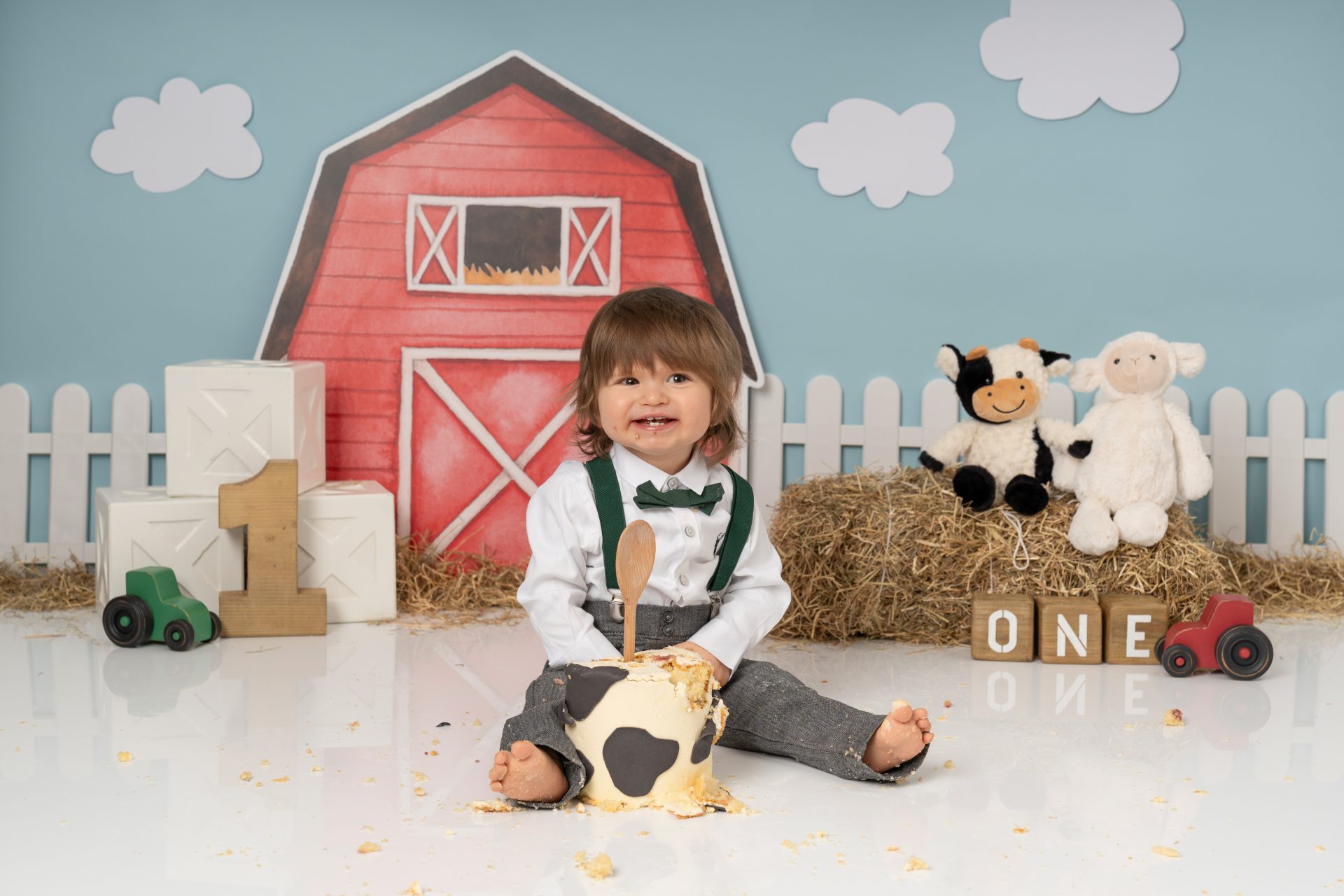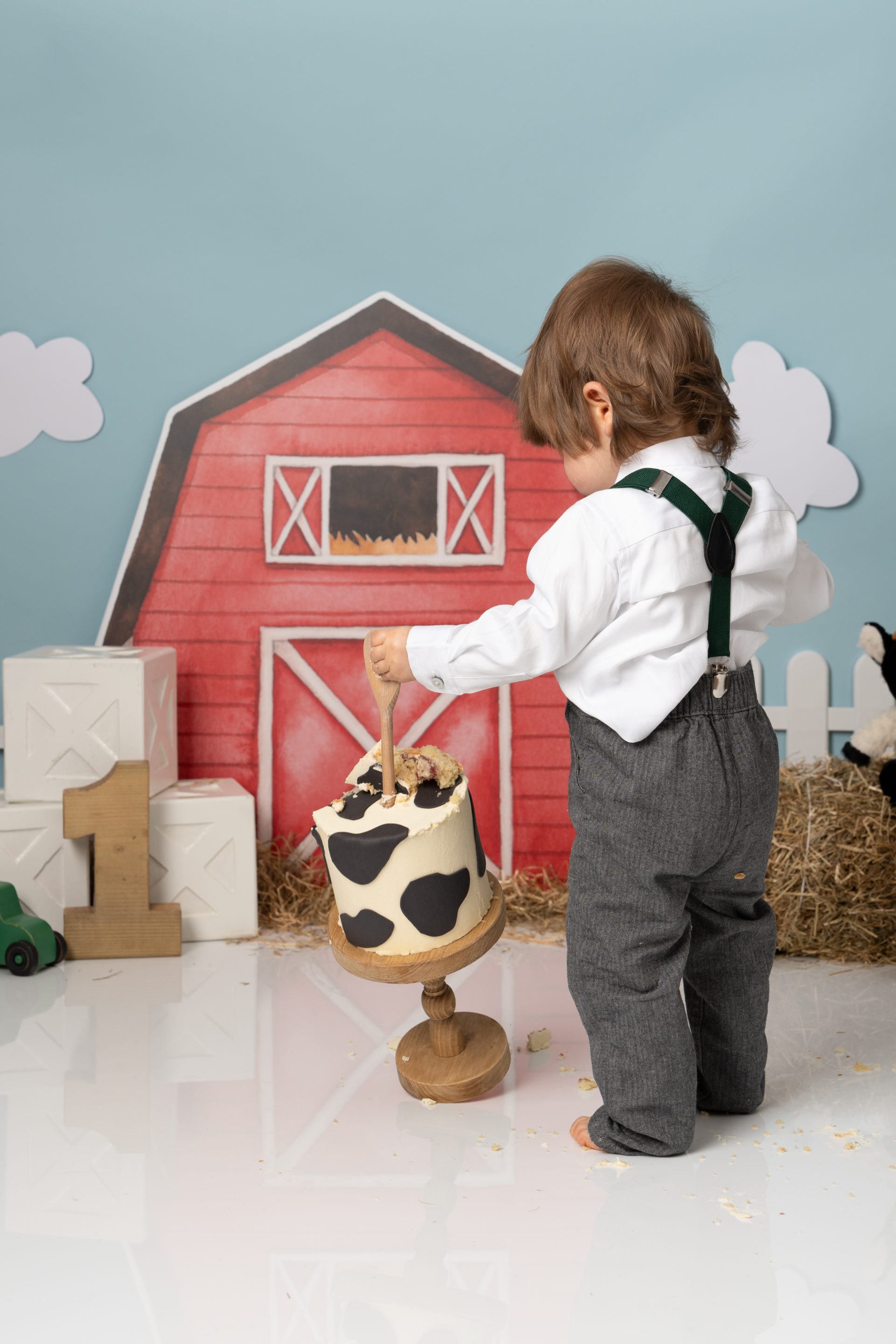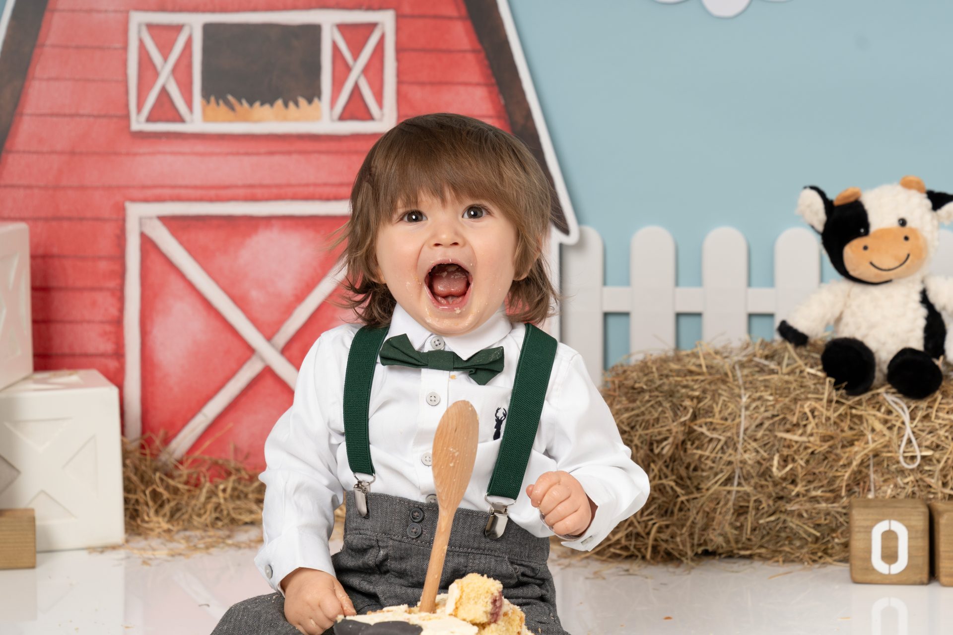We begin each session with a sweet portrait of your little one in their best birthday outfit, perfect for marking this big milestone. Then it’s time for the main event, the cake!