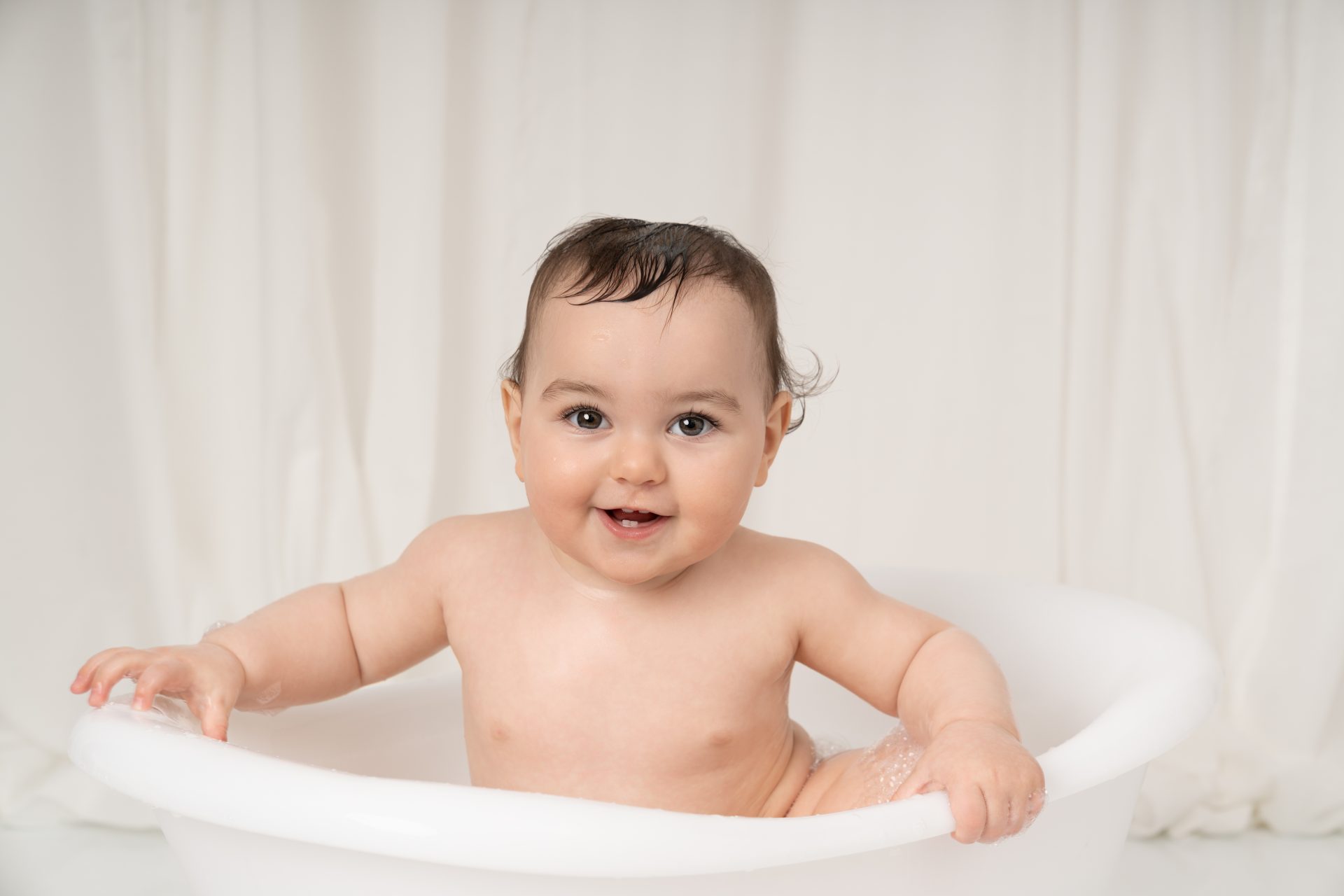 Once your little one has had their fun with the cake and made plenty of mess, we move on to the splash session. Warm water, bubbles, and a little bath time fun usually bring out big smiles. Parents are welcome to join in, helping make this part even more playful and relaxed.