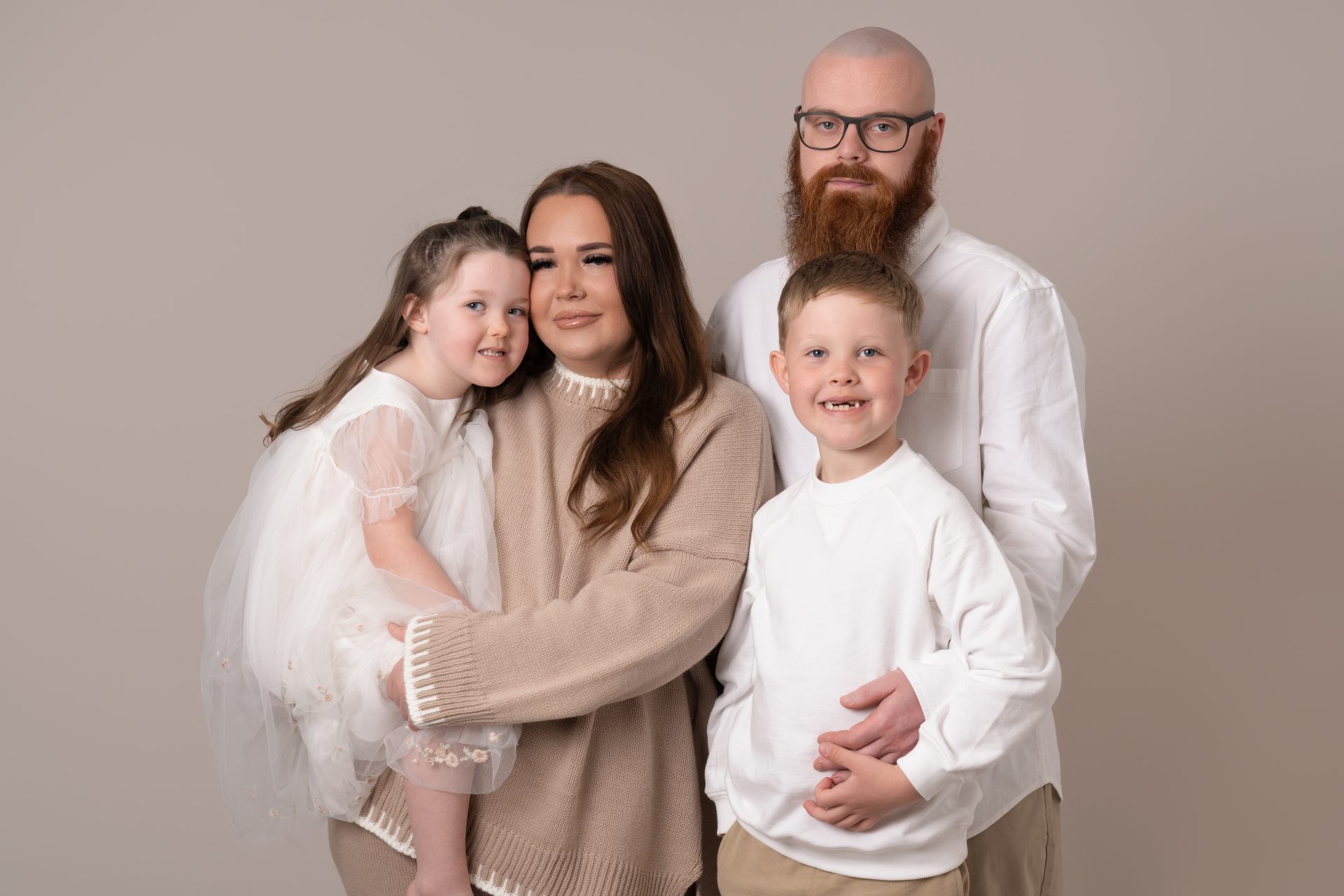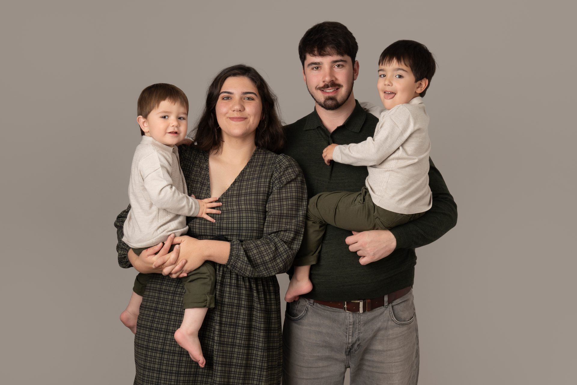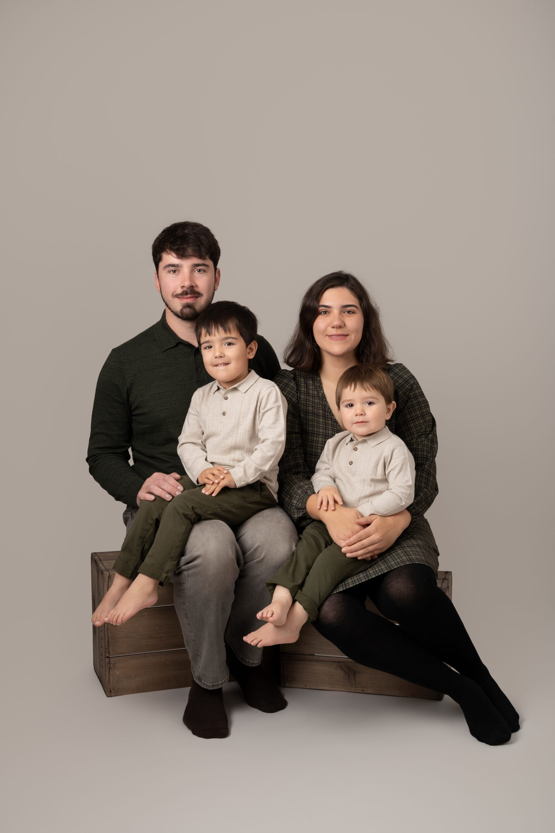 Sessions typically last 45 minutes to 1 hour, depending on the number of people. We keep things relaxed and child-friendly, with plenty of time. Our family sessions are suitable for all ages, we can fit up to 9 people in the studio.